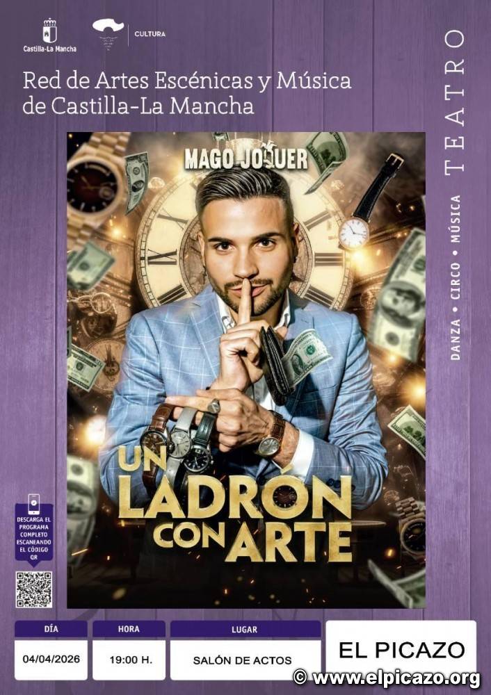 El increíble Mago Joquer llegó al Salón de Actos de El Picazo el sábado 4 de abril con su espectáculo que dejó al público presente sin palabras… Su show “Un ladrón con arte” hizo que el tiempo volara y las cosas desaparecieran !