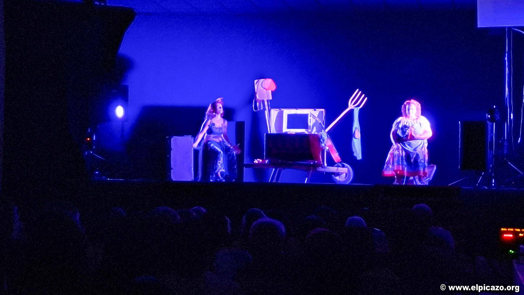 Representación de la obra de teatro Tina y Tuna, mujeres rurales con alma de juglares.